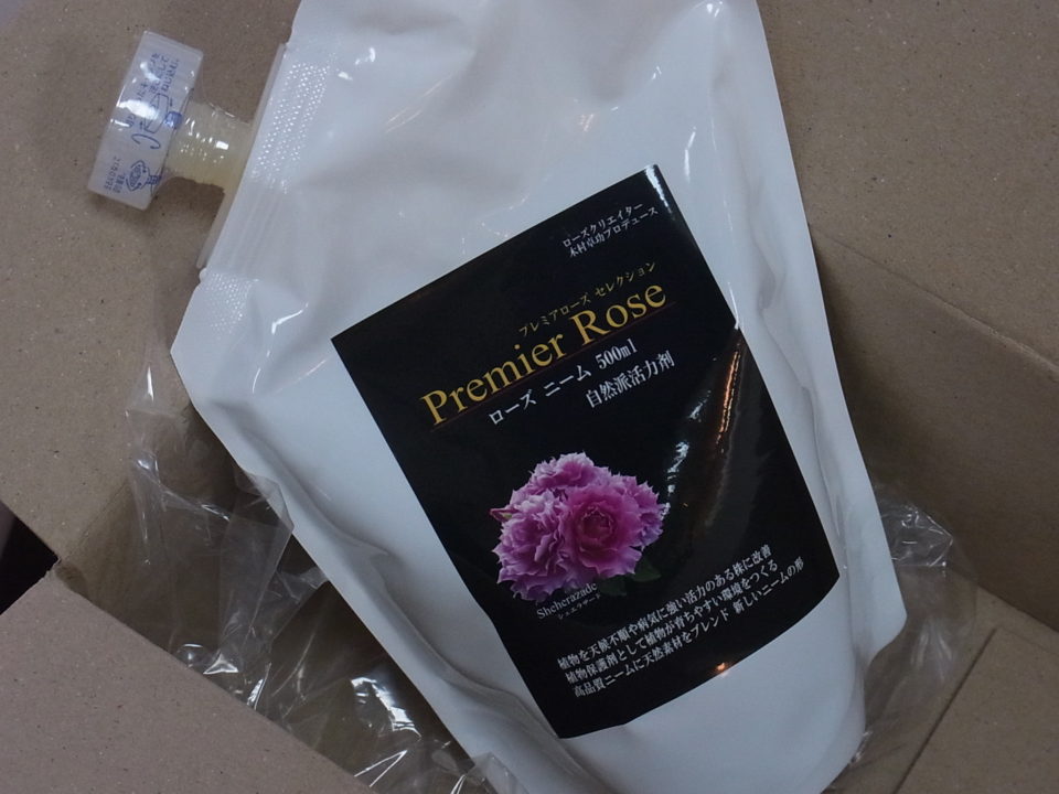 これを500倍に薄めて葉や茎に散布します。今日も散布しました人にも良いようでローズ・ニームを散布した日は心なしか朝から気持ちがいいです。