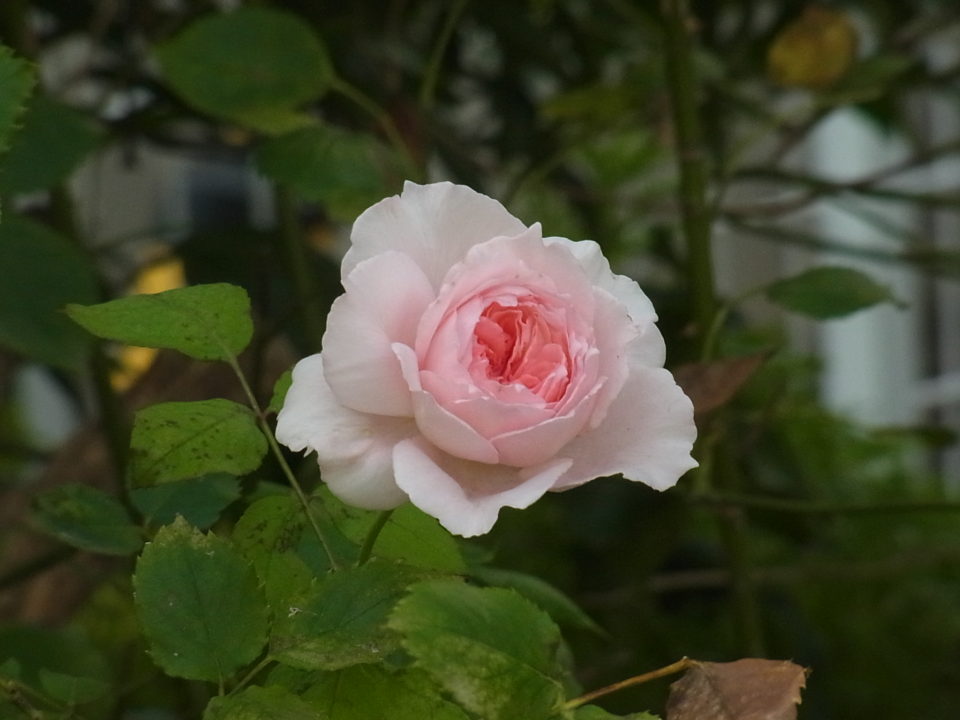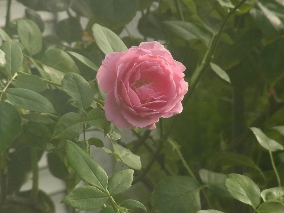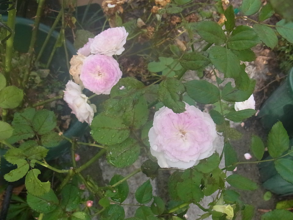 本格的な夏がやってきました、暑くなると花が開くサイクルが早くなり小さいうちに開花します。そんな暑い時期は蕾を摘み続けて秋の花に力を蓄えるのがロザリアンなのですが、種類少ない状況では店内の花が足りなくなるのでそうも言ってられません。しかも株が大人になると虫も甲虫類が花を食べてしまいます。それでも運良く咲いたバラがありました。